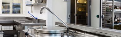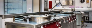 Installation d’une cuisine pour cette résidence universitaire avec point chaud, des chambres froides, une zone pâtisserie et une zone de lavage indépendante.