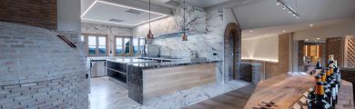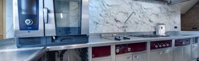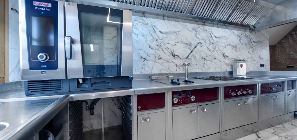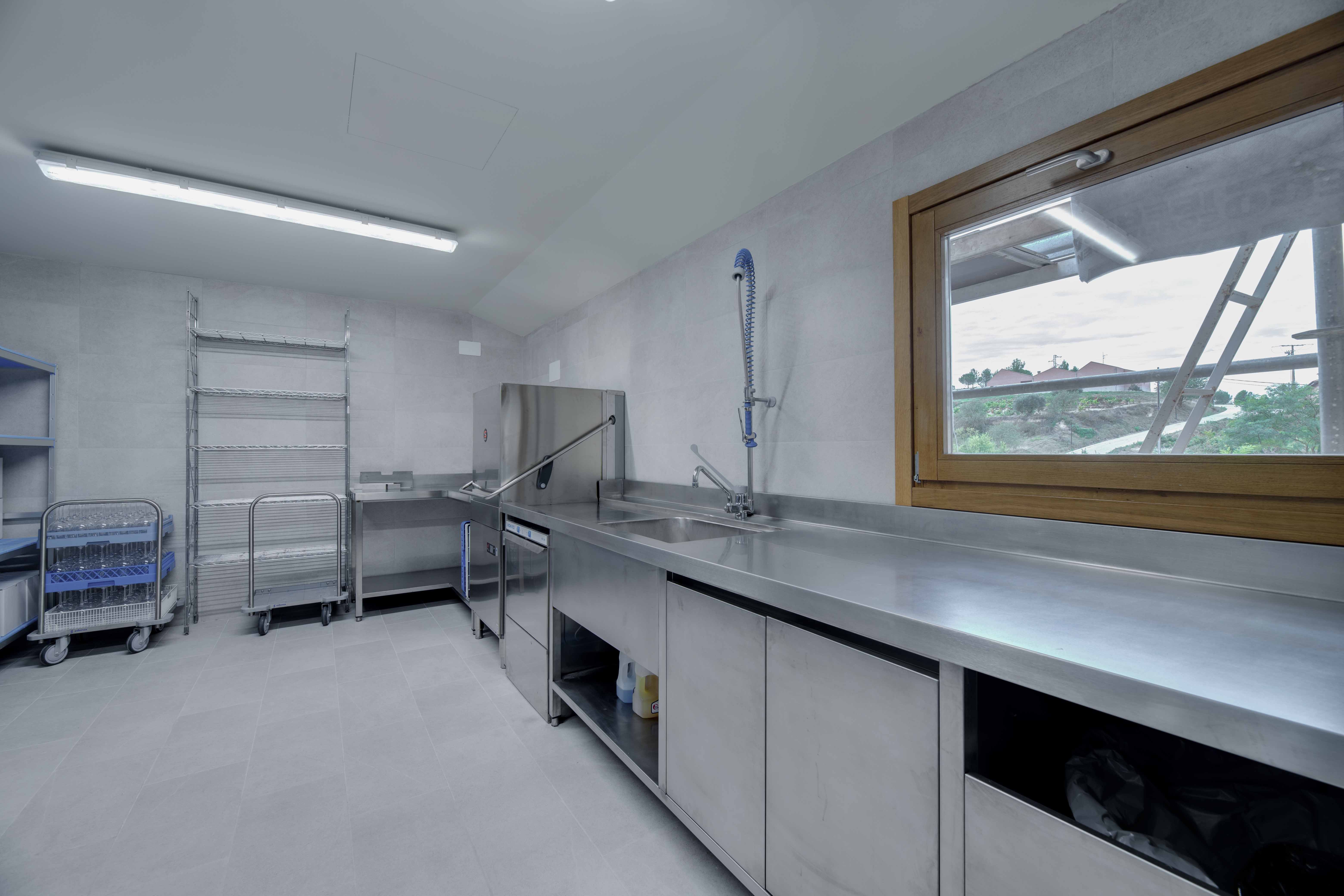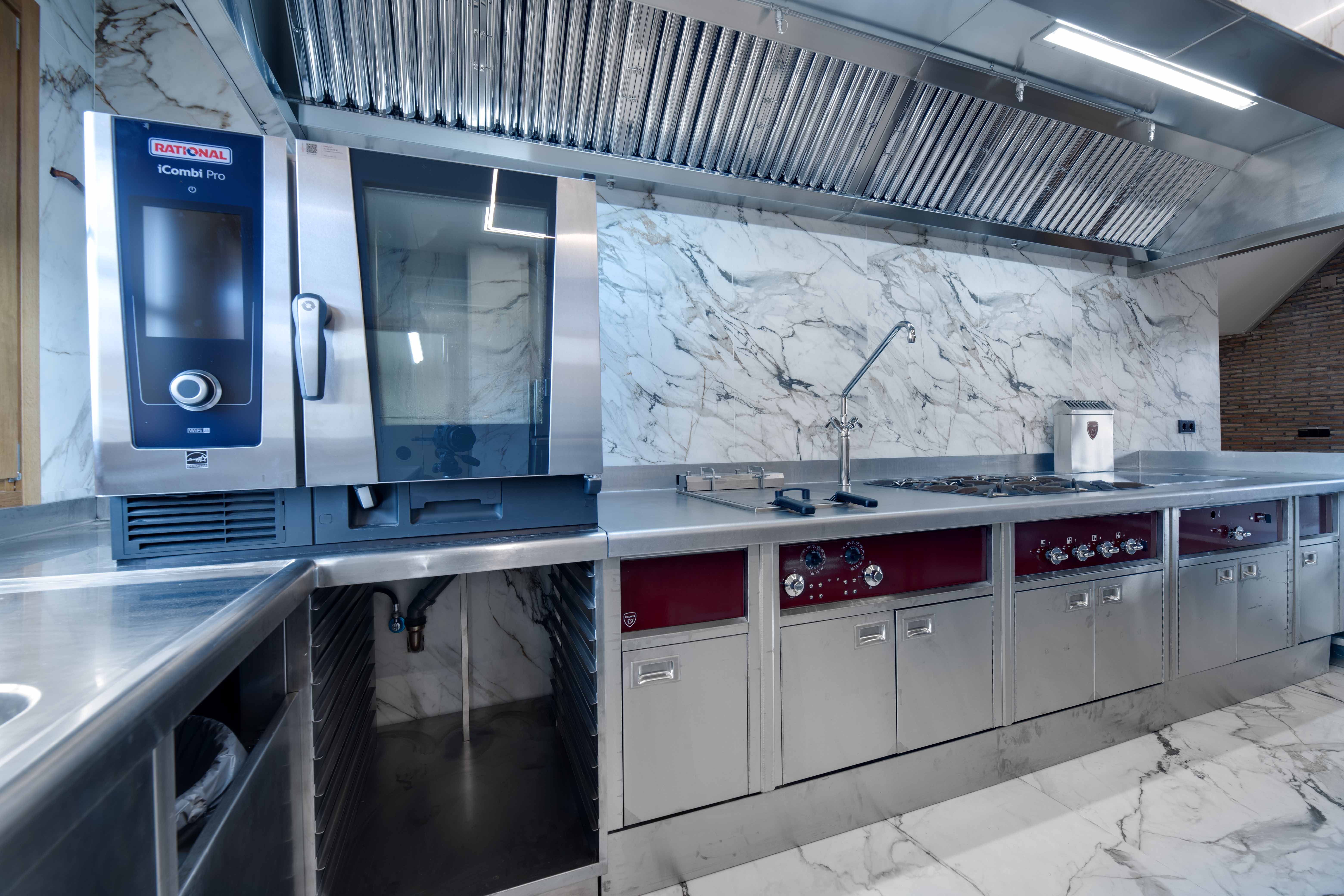 El núcleo de la cocina está compuesto por módulos de Charvet, que incluyen fuegos, freidora y plancha, junto con un horno Rational para una versatilidad culinaria óptima. Para garantizar la funcionalidad del espacio, se han incorporado sistemas de refrigeración de Infrico, bajo mostradores de bebidas de Liebherr y un sistema de lavado de vajilla de Sammic, proporcionando una eficiencia acorde con el estándar de excelencia de la bodega.