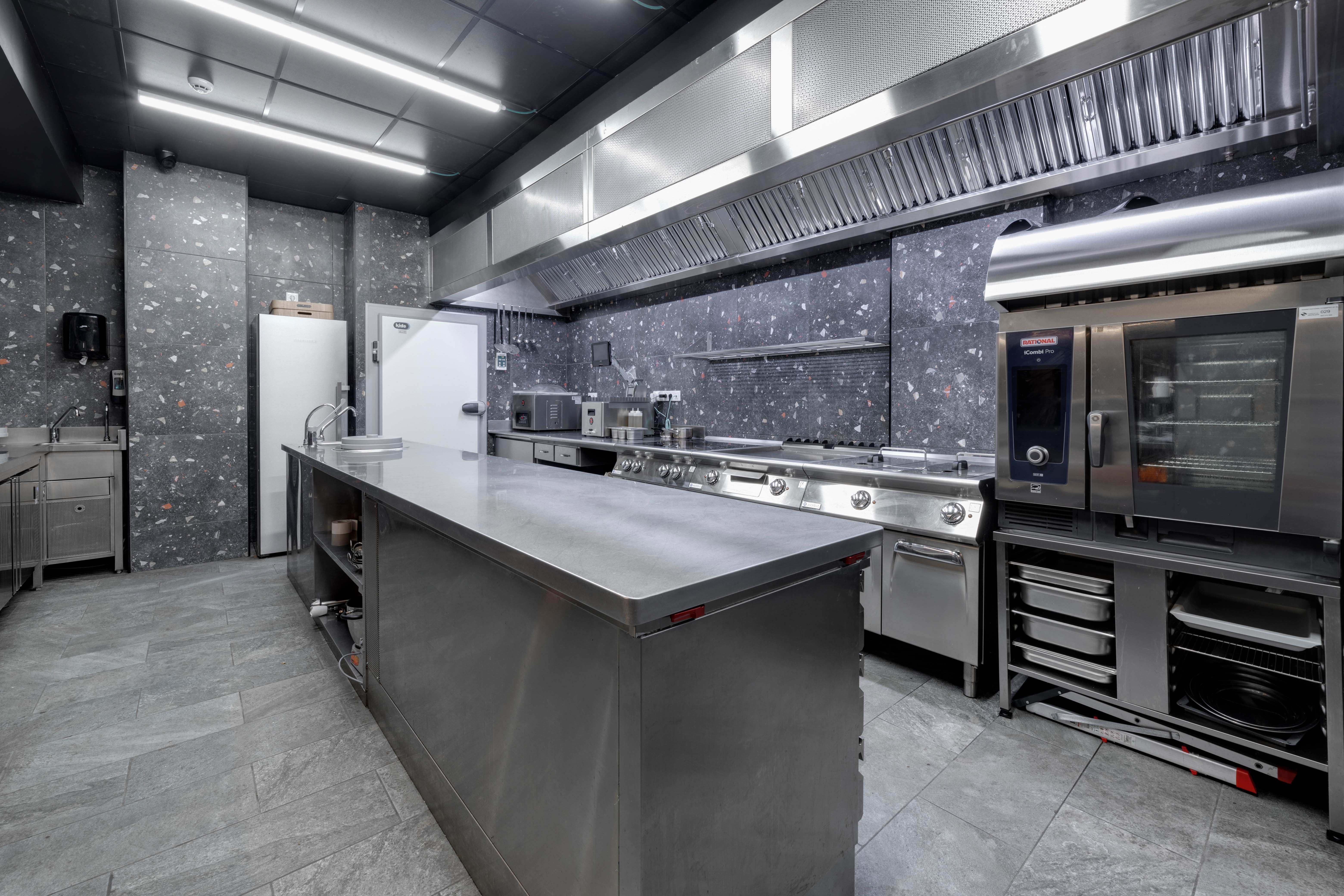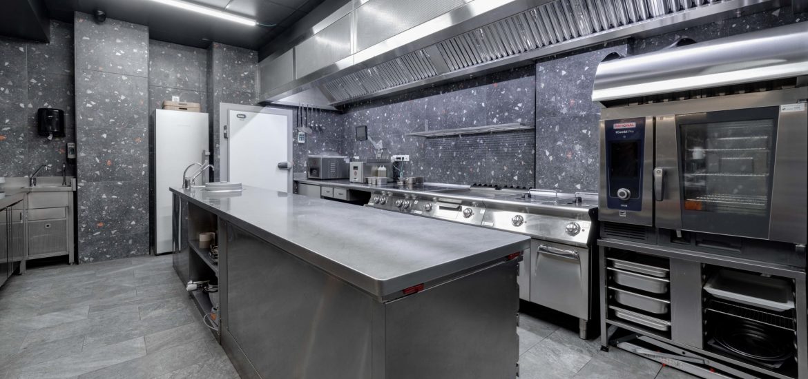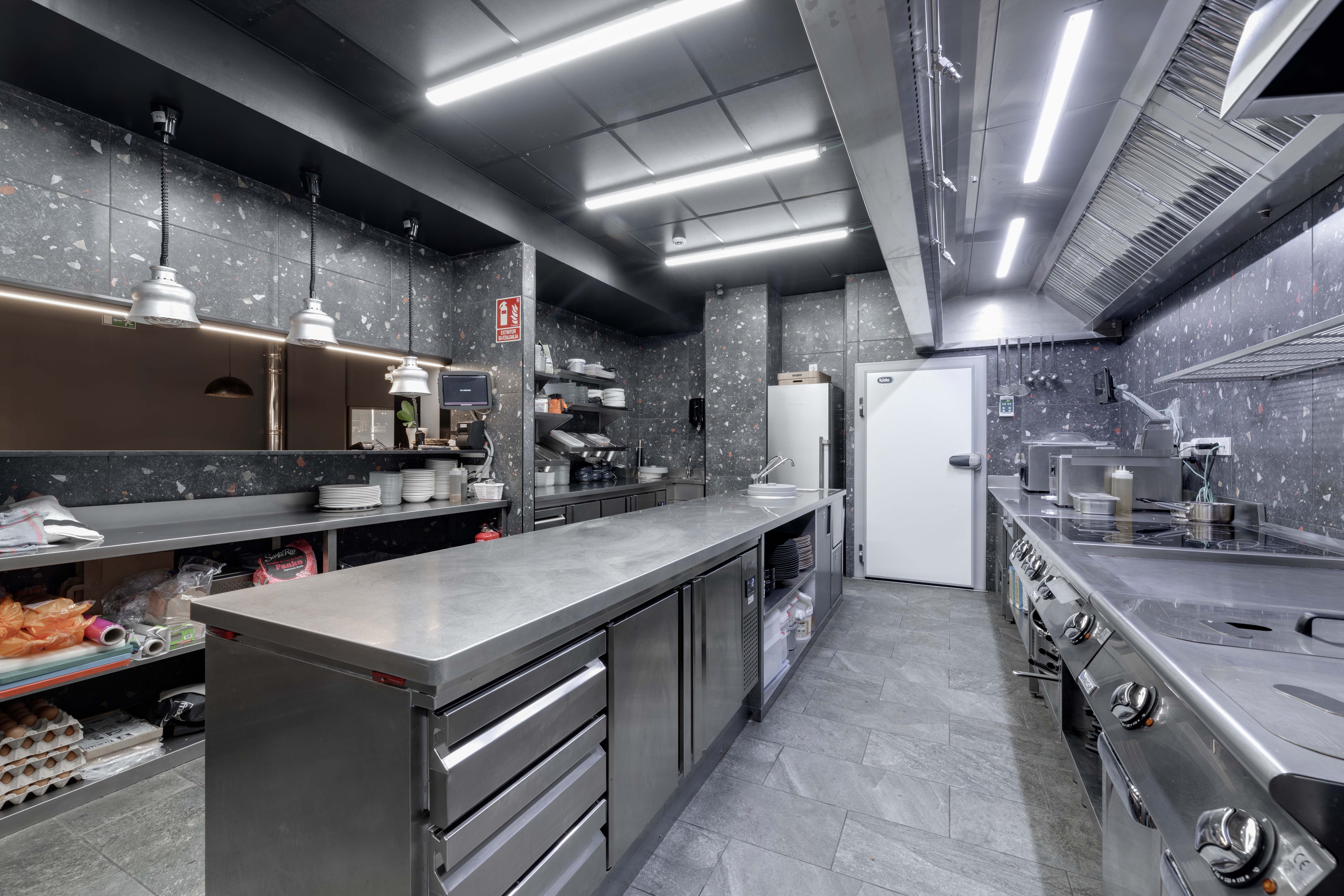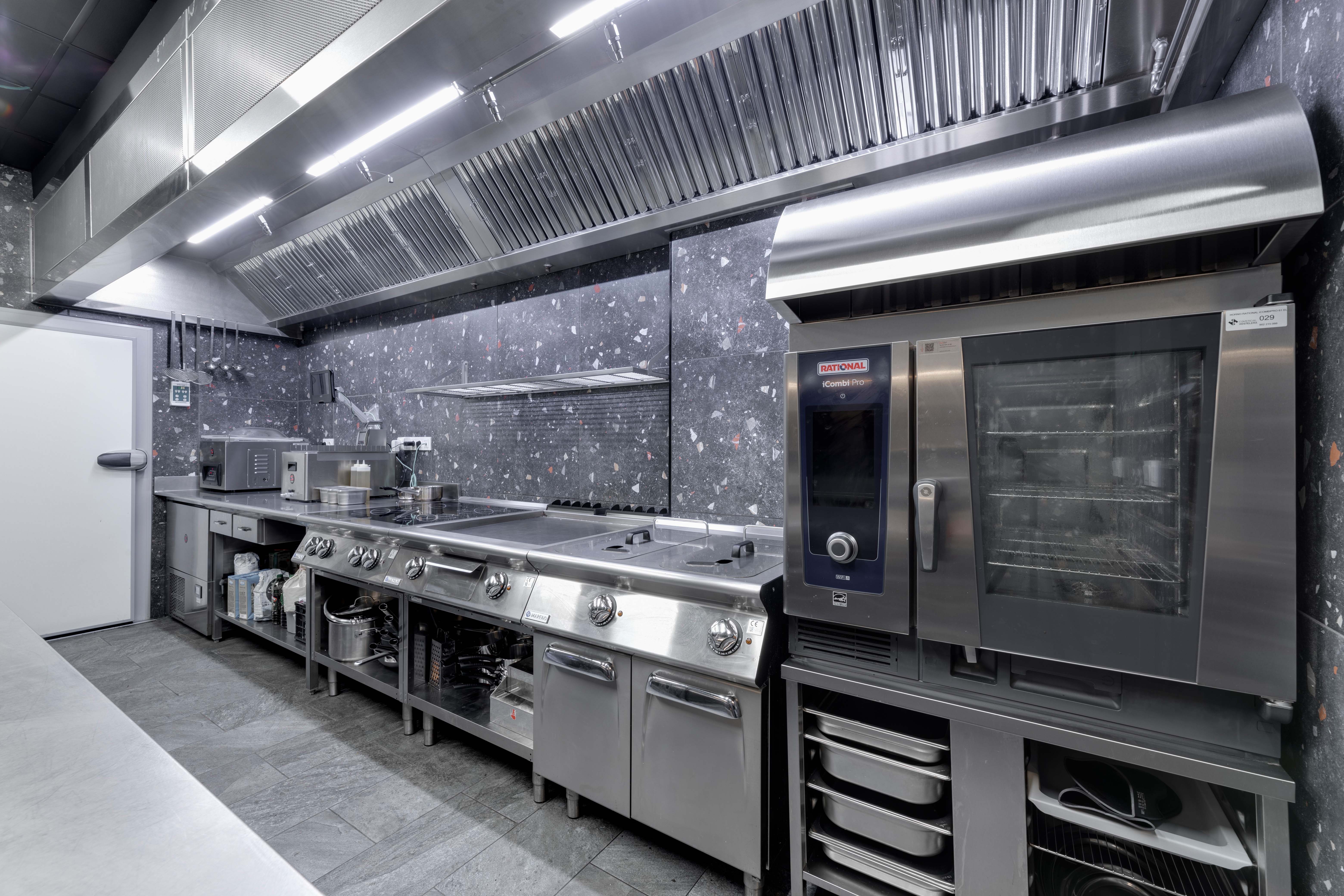Se cuenta con una cocina montada con el innovador sistema KEM, que permite un ahorro y control de la energía consumida y con el sistema a de extracción EVess, una solución sostenible que permite sumistrar la extracción necesaria acorde a la intensidad de la producción.