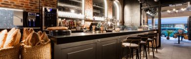 Comercial Hostelera ha diseñado el espacio de cocinado y ha sido la encargada de suministrar la tecnología que hiciera posible una cocina sostenible y totalmente alineada con la oferta gastronómica de Gronx.