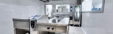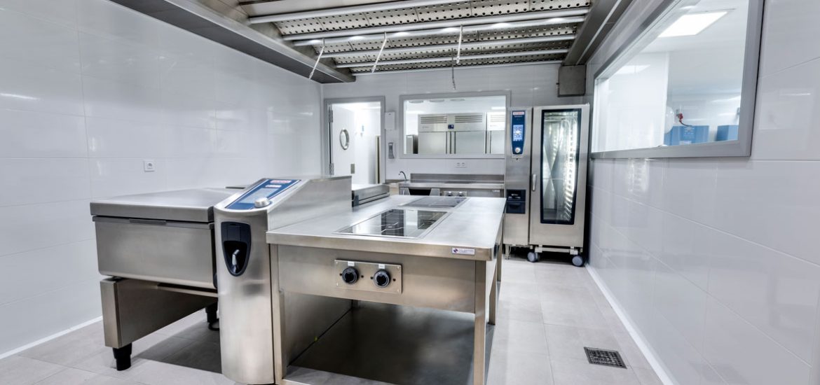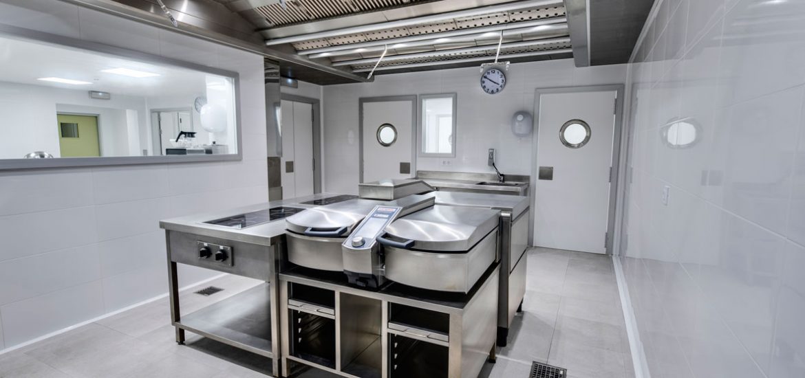 Cuenta con una cocina hospitalaria de última tecnología totalmente eléctrica con equipos multifunciones Rational y cocinas de inducción que permiten una alta producción y eficiencia ocupando menos espacio, mayor rapidez y limpieza.