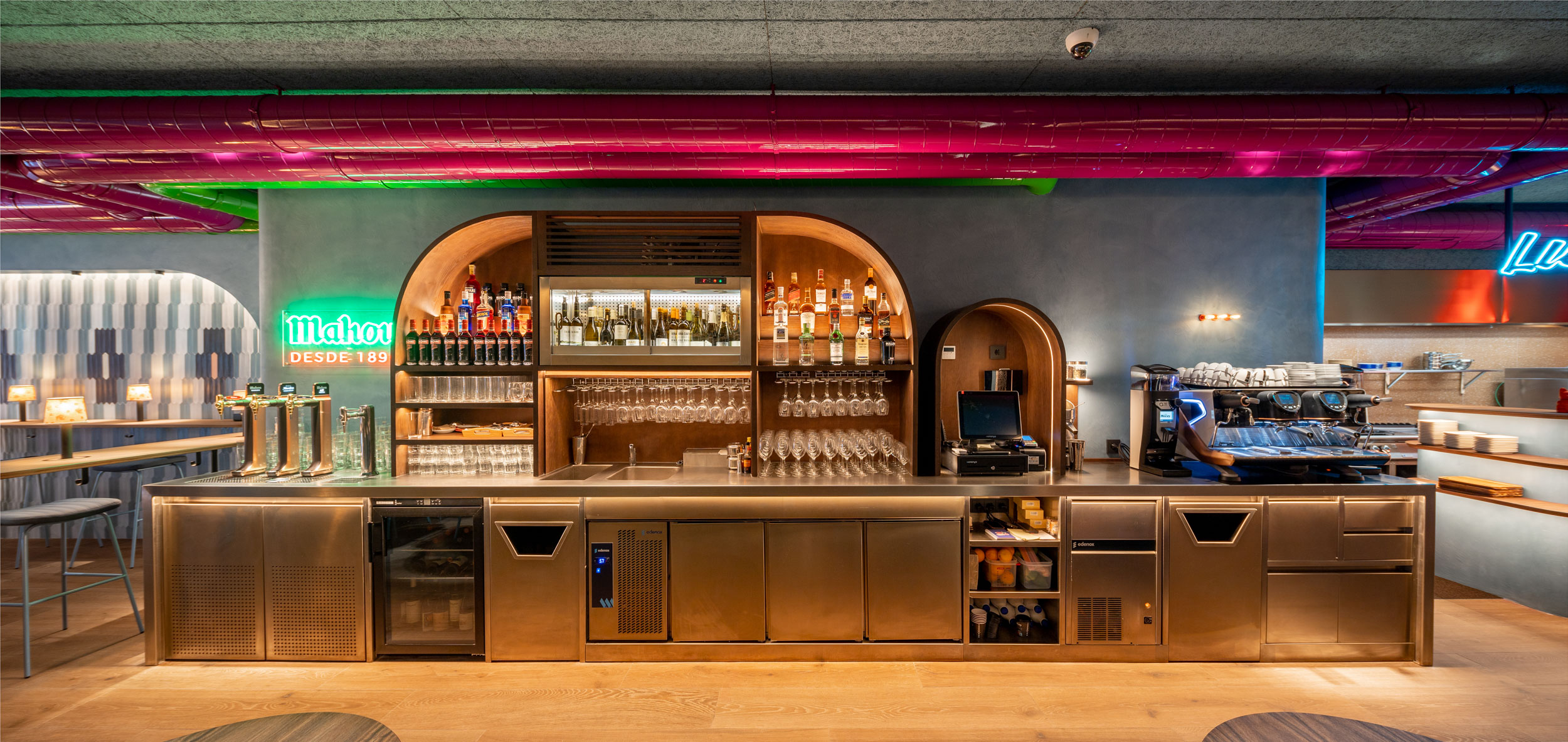 Instalación de la última tecnología en 3 plantas diferentes. Una cocina central para gastrobar con cuarto de frío de preparación barra y zona de lavado con túnel.