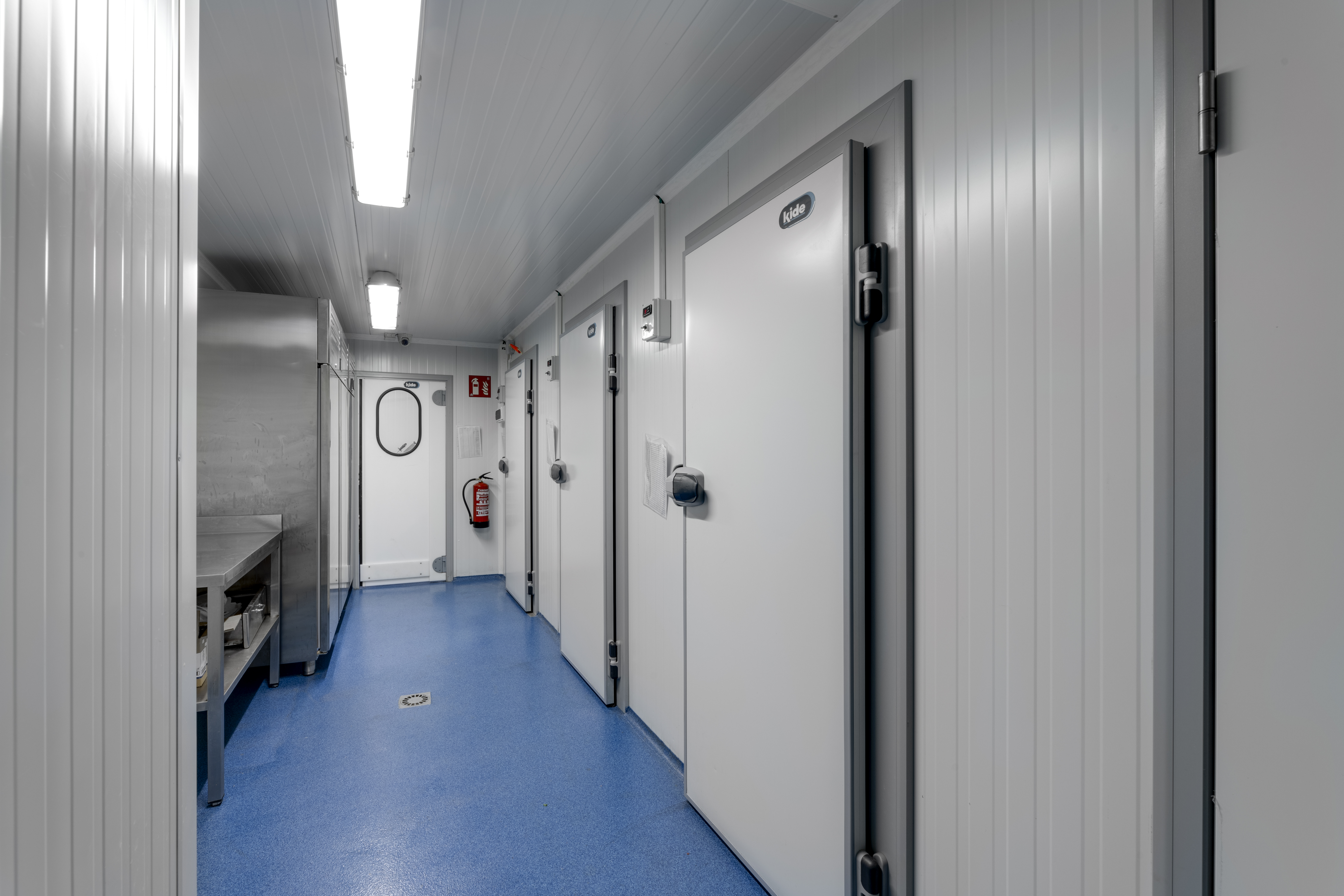 Se completa con un cuarto de envasado (con cámara de producto terminado) con termoselladora de barquetas de Valko, envasadora vacío Sammic, etiquetadora y abatidor Infrico,