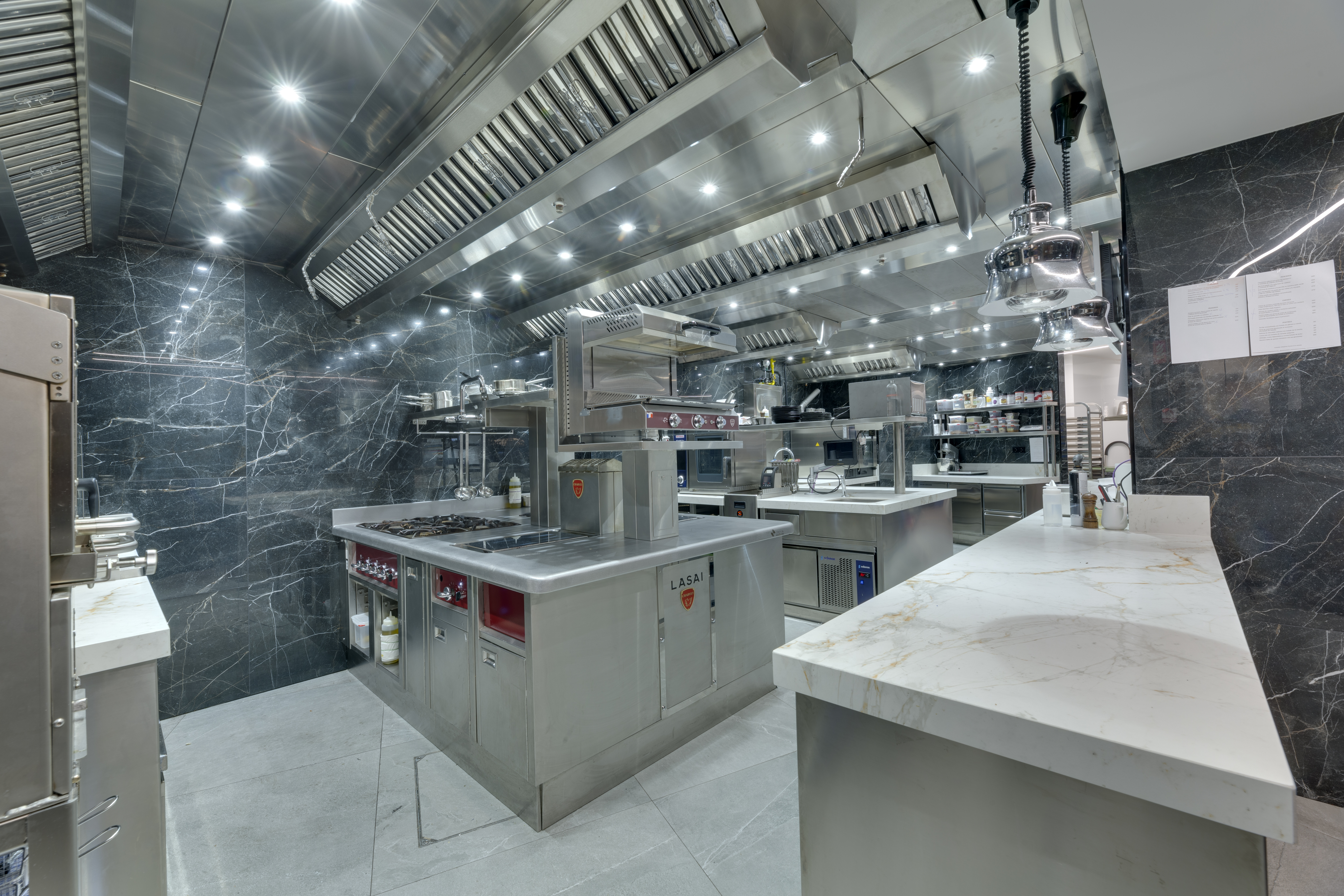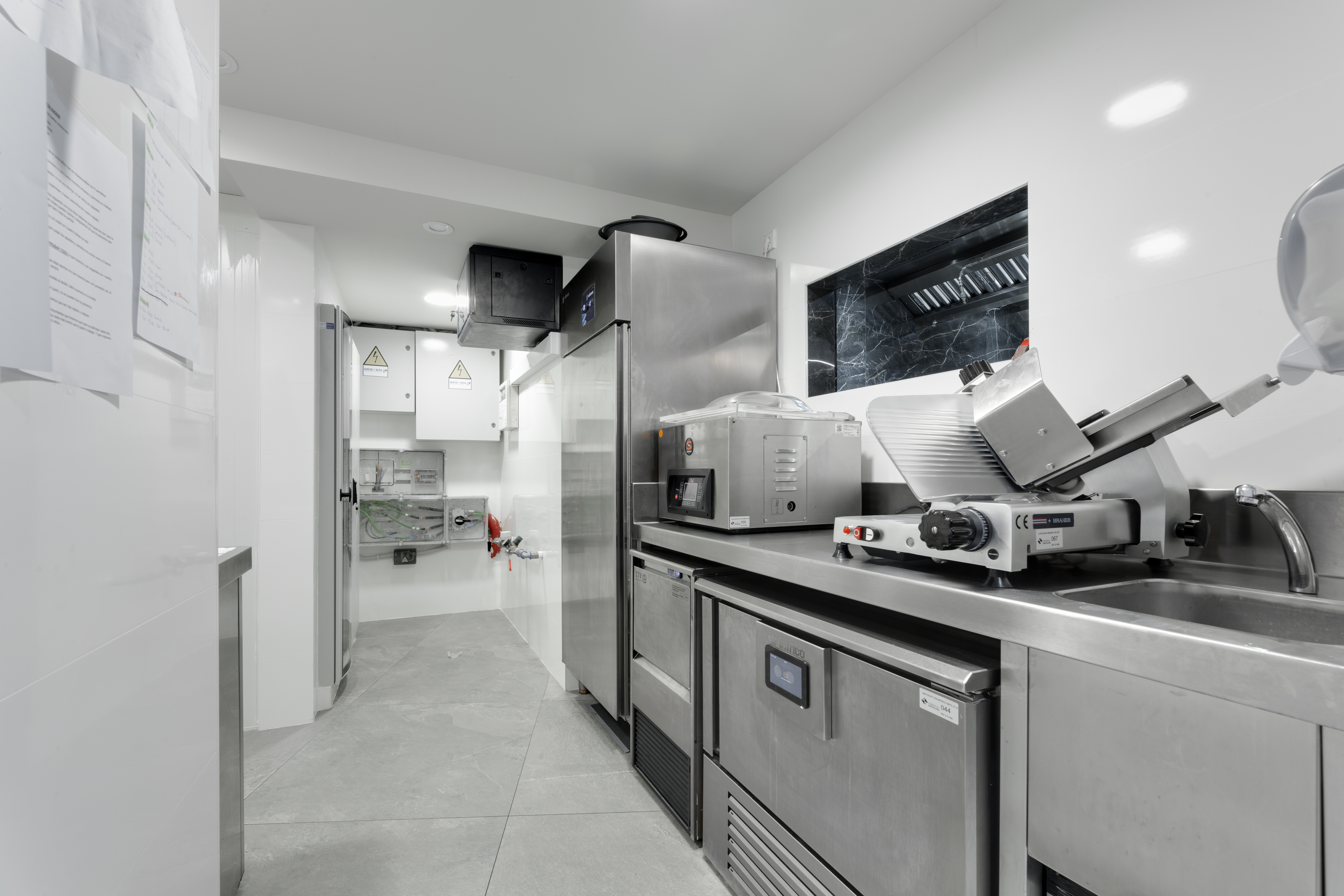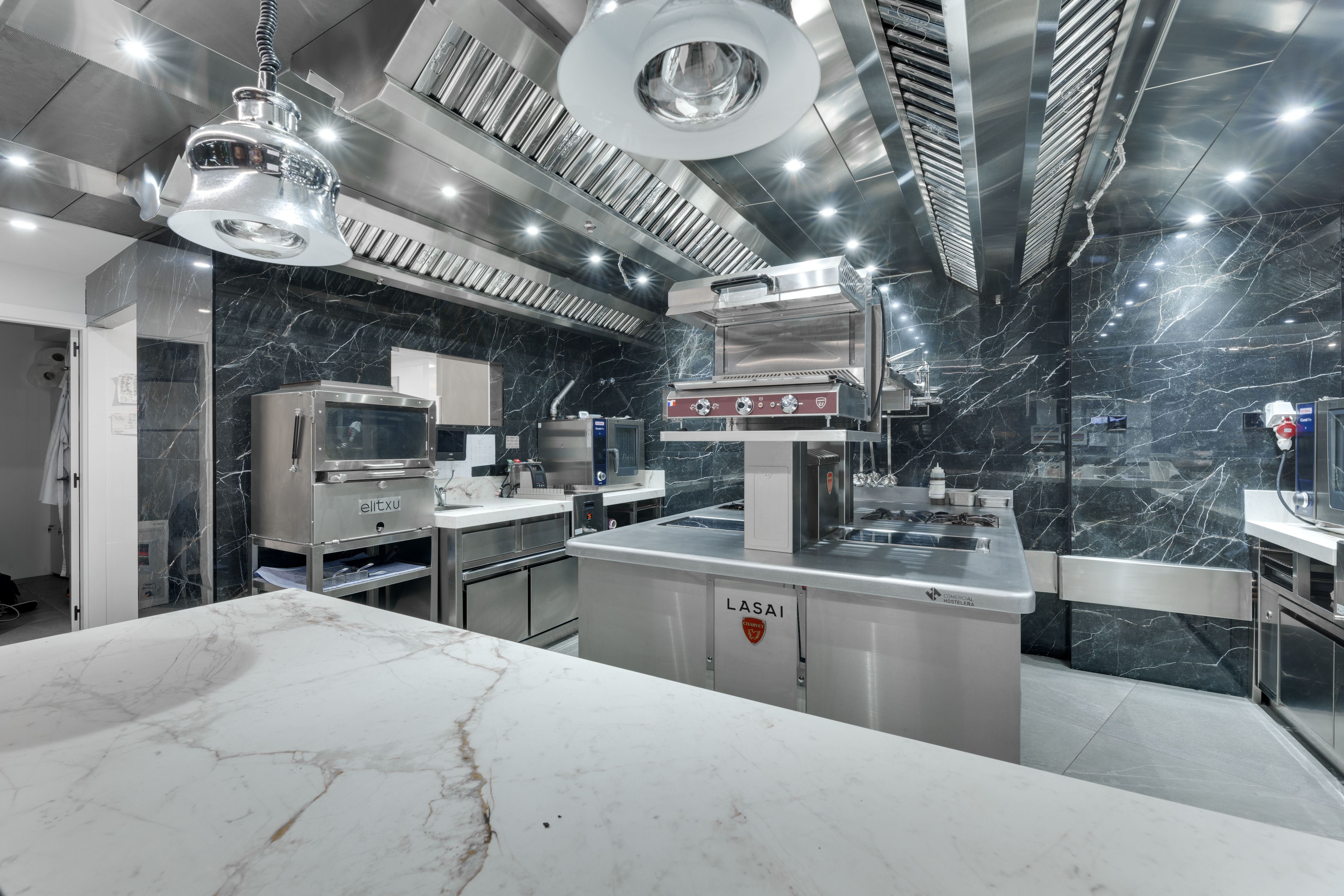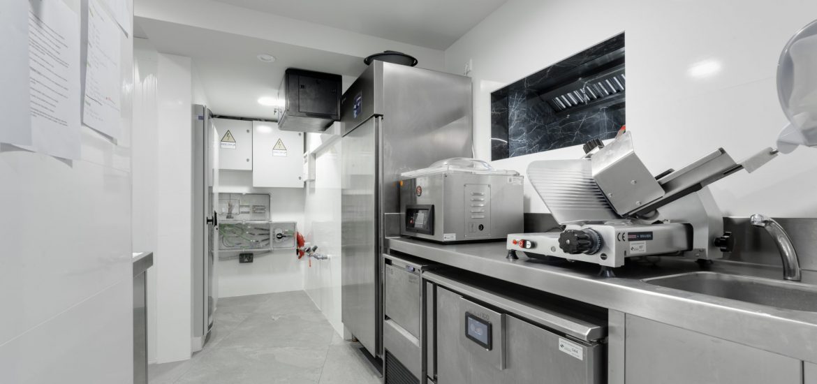 La instalación cuenta con techos filtrantes con sistema inteligente de extracción EVESS, hornos Rational, sistemas de lavado Winterhalter, sistema de cocción a baja temperatura controlado digitalmente Sammic y Janby Digital, frio industrial Edenox e Infrico y máquinas hielo de Itv.